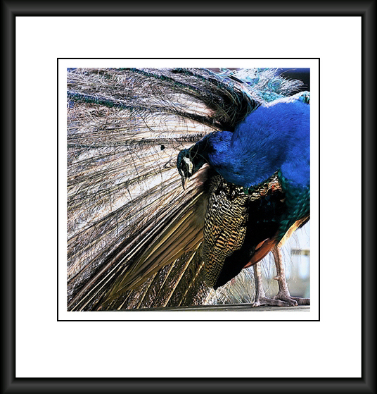 An Indian blue peafowl (a male 'peacock' in this case) wandering around a